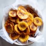 It’s best to use firm, just-ripe bananas to get crispy chips. Overripe bananas are too soft and may become mushy instead of crunchy.
