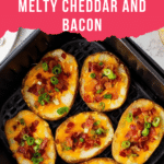 Keywords: Air fryer potato skins, crispy potato skins, loaded potato skins, easy appetizer, bacon and cheese potato skins