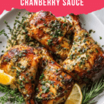 5. Serve: Plate the rested turkey legs alongside the warm cranberry sauce for dipping or drizzling. Enjoy the crispy, flavorful turkey paired with the bright, tangy sauce for a perfect meal.