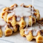 - Glaze the Donuts: Drizzle the glaze generously over the warm waffle donuts and finish with an extra dusting of powdered sugar for a beautiful presentation and added sweetness.