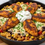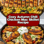 This Autumn Harvest Chili Chicken Mac Skillet blends tender, golden-seared chicken with seasonal veggies and elbow macaroni in a rich, velvety chili-spiced sauce. The butternut squash and corn add natural sweetness balanced by smoky paprika and a touch of cayenne for warmth. Finished with fresh parsley, it’s a comforting, hearty one-pan dish perfect for cozy fall dinners.