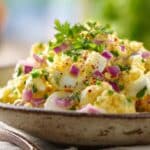 This Award-winning Southern Potato Salad is a classic creamy and tangy dish perfect for picnics, barbecues, or any gathering. Featuring tender boiled potatoes, a zesty mayonnaise-based dressing with red wine vinegar, fresh herbs, and crisp vegetables, this recipe delivers a perfect balance of flavors and textures that develop even more after chilling.