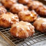 - Cool and Glaze: Allow the fritters to cool slightly on a wire rack for about 5 minutes before drizzling the glaze over the top for a sweet finishing touch.
