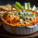 Keywords: Buffalo chicken dip, baked dip, party appetizer, spicy dip, game day recipe, creamy chicken dip