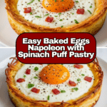 Baked Eggs Napoleon is a delicious and elegant brunch recipe featuring flaky puff pastry filled with a creamy spinach mixture and topped with perfectly baked eggs. It’s easy to prepare and makes a stunning dish to impress family and friends.