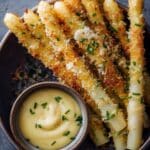 Delicious and crispy Baked Fish Sticks made with fresh cod, coated in a seasoned Panko and Parmesan mixture, baked to golden perfection. A healthier alternative to fried fish sticks, perfect for an easy weeknight meal or snack.