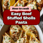 Keywords: beef stuffed shells, stuffed pasta shells, baked pasta, Italian dinner, cheesy stuffed shells, ground beef pasta recipe