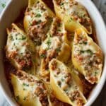 Keywords: beef stuffed shells, stuffed pasta shells, baked pasta, Italian dinner, cheesy stuffed shells, ground beef pasta recipe