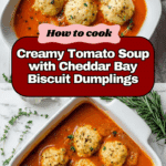 A comforting and hearty tomato soup paired with cheesy cheddar bay dumplings. This recipe combines a rich tomato base with tender, savory biscuit dumplings reminiscent of Red Lobster’s famous cheddar bay biscuits, making for a deliciously warming meal perfect for any time of year.
