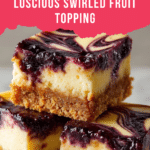 Blueberry Cheesecake Bars are a delightful twist on classic cheesecake with a buttery graham cracker crust and swirls of fresh blueberry compote. These bars combine creamy, tangy filling with fruity bursts, perfect for any occasion.
