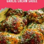 This Bobby Flay Chicken Thighs with Creamy Garlic Sauce recipe features juicy, bone-in, skin-on chicken thighs seared to golden perfection and simmered in a luscious, rich garlic cream sauce. The sauce combines butter, garlic, heavy cream, chicken broth, Dijon mustard, and lemon juice for a flavorful and comforting dish that’s perfect for dinner. Garnished with fresh parsley, this recipe brings a restaurant-quality meal to your table with simple stovetop cooking.