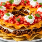 This Bundt Pan Nachos recipe offers a fun and easy twist on traditional nachos, perfect for parties and gatherings. Layers of seasoned ground beef, melted Colby jack cheese, and crunchy tortilla chips are baked in a bundt pan, creating a beautifully stacked and shareable appetizer. Garnished with sour cream, diced tomatoes, and fresh cilantro, these nachos combine classic Tex-Mex flavors with a creative presentation.