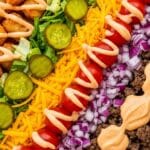 This Burger Bowl recipe is a deconstructed classic burger served over crispy tater tots. Ground beef is seasoned and cooked on the stovetop, paired with a flavorful homemade burger sauce and classic toppings like shredded cheddar, red onions, tomatoes, lettuce, and pickles. The result is a hearty, satisfying bowl that’s perfect for casual meals without the bun.