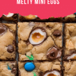 Delight in these festive Cadbury Egg Chocolate Chip Easter Cookie Bars, featuring browned butter, chocolate chips, pastel Easter M&M’s, crushed Cadbury Mini Eggs, and topped with halved crème-filled Cadbury eggs for a delightful seasonal treat perfect for sharing.
