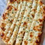 These Cheesy Garlic Breadsticks are a deliciously soft and flavorful appetizer or side dish, featuring a homemade dough topped with garlic-infused butter and a generous layer of melted mozzarella and Parmesan cheese. Perfectly paired with marinara sauce for dipping, they are a crowd-pleasing treat ideal for any occasion.