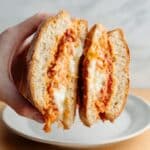 Chicken Parmesan Grilled Cheese is a delicious twist on two classic favorites. This sandwich combines crispy chicken, melty cheese, and savory marinara all grilled between buttery bread for a comforting, flavorful meal.