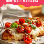 A classic Italian-American dish featuring tender, breaded chicken breasts topped with marinara sauce and melted cheese, baked to golden perfection. This Chicken Parmesan recipe combines crispy, flavorful chicken with rich tomato sauce and gooey mozzarella, making it a comforting and crowd-pleasing meal perfect for any occasion.