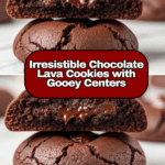 These decadent chocolate lava cookies feature a rich, molten chocolate center encased in a soft, cocoa-infused cookie shell. With a homemade dark chocolate ganache filling that oozes out when bitten into, these cookies combine the best of fudgy brownies and classic chocolate cookies for an irresistible treat perfect for any chocolate lover.