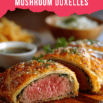 Keywords: Beef Wellington, filet mignon, mushroom duxelles, prosciutto, puff pastry, elegant dinner, classic British dish