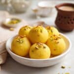 Store rasgullas in their syrup in an airtight container in the refrigerator. They keep well for up to 3-4 days. Serve chilled for the best taste. Reheat gently in the syrup if you prefer them warm, but they are traditionally enjoyed cold.