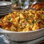 Keywords: cornbread dressing, cornbread stuffing, southern dressing, holiday side dish, Thanksgiving dressing, savory bread casserole