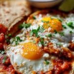 Chilaquiles is a classic Mexican breakfast dish featuring crispy fried tortillas simmered in a flavorful red and green chile sauce. Topped with fresh garnishes and often served with eggs and beans, it’s a comforting, hearty meal perfect for starting your day or enjoying anytime.