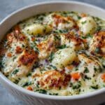 A rich and comforting dish featuring tender gnocchi simmered in a creamy parmesan sauce with shredded rotisserie chicken, fresh spinach, and sun-dried tomatoes. This one-pot recipe is perfect for a quick yet indulgent weeknight dinner.