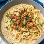 - Toss pasta and serve: Add the cooked fettuccine to the skillet and gently toss to coat the pasta evenly with the creamy salmon sauce. Serve immediately, garnished with extra herbs or parmesan if desired.
