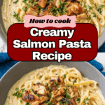 Keywords: creamy salmon pasta, fettuccine, salmon recipe, easy pasta, Italian seafood pasta, garlic cream sauce, quick dinner