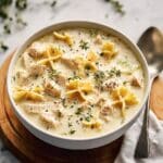 Keywords: white chicken lasagna soup, creamy chicken soup, lasagna pasta soup, easy weeknight soup, chicken pasta soup