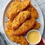 - Serve: Remove from oven, let rest for a few minutes, then serve the crispy baked chicken tenders with your favorite dipping sauces or sides.