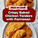 This recipe delivers perfectly crispy baked chicken tenders that are tender on the inside with a crunchy, flavorful coating. Made with simple ingredients like panko breadcrumbs, Parmesan cheese, and a blend of spices, these chicken tenders are a healthier alternative to fried versions, baked to golden perfection with a light coating of olive oil spray.