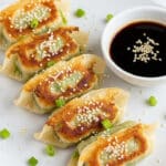 These Crispy Cabbage Dumplings with Soy Dipping Sauce are a delightful appetizer or snack featuring a savory cabbage filling encased in tender dumpling wrappers. Pan-fried to golden perfection and then steamed for a juicy center, these dumplings offer a perfect balance of crispy bottoms and soft tops. Served with a tangy, slightly sweet soy dipping sauce, they make a flavorful, satisfying dish inspired by Asian cuisine.