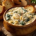 This Crock Pot Creamy Chicken Parmesan Soup is a comforting and hearty dish perfect for cozy nights. Tender chicken breasts simmered slowly with Italian herbs, garlic, diced tomatoes, and chicken broth create a flavorful base. Finished with creamy Parmesan cheese and heavy cream, and loaded with tortellini and fresh spinach, this soup combines classic Italian flavors in a rich, creamy texture. Easy to prepare in a slow cooker, it’s a one-pot meal ideal for busy days when you want something warm and satisfying.