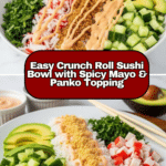 Crunch Roll Sushi Bowl is a delightful deconstructed sushi experience, combining tender imitation crab, fresh vegetables, and creamy avocado over a bed of rice. This bowl features a flavorful homemade eel sauce and spicy mayo, topped with crispy toasted panko breadcrumbs to add the perfect crunch. Easy to prepare and packed with textures and umami flavors, it’s a perfect quick meal inspired by sushi rolls without the fuss of rolling.