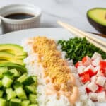 - Enjoy: Serve immediately and enjoy the fresh, flavorful, and crunchy sushi bowl experience.