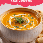 Store any leftover soup in an airtight container in the refrigerator for up to four days. Reheat gently on the stove or in the microwave. The soup also freezes well for up to six months—thaw overnight in the fridge before reheating. Keep the naan croutons separate and add them fresh at serving time to maintain their crispness.