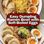 Keywords: dumpling ramen, soft-boiled eggs, instant ramen noodles, chicken broth soup, Asian comfort food, quick ramen recipe