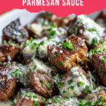 Keywords: Garlic butter steak bites, Parmesan cream sauce, steak recipe, quick dinner, easy steak bites, creamy sauce