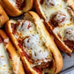 Keywords: meatball sub, easy meatball sandwich, weeknight dinner, Italian sandwich, homemade meatballs, marinara sauce, sub sandwich