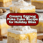 This festive Eggnog Poke Cake combines the rich flavors of vanilla cake infused with warm cinnamon and nutmeg, soaked in creamy eggnog and topped with a luscious vanilla pudding layer and whipped topping. Perfect for holiday gatherings, this moist and flavorful dessert will delight eggnog lovers and cake enthusiasts alike.