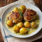 This Garlic Parmesan Chicken and Potatoes recipe is a delightful one-pan dish featuring tender, seasoned chicken breasts and crispy baby potatoes baked to perfection, finished with a rich garlic butter and freshly grated Parmesan cheese. It’s a comforting, flavorful meal that’s easy to prepare and perfect for family dinners or meal prep.
