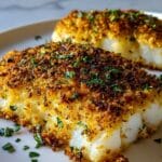 This Garlic Parmesan Crusted Halibut recipe features tender, flaky halibut fillets topped with a crispy and flavorful crust made from fresh Parmesan, breadcrumbs, and minced garlic. The combination of melted butter, olive oil, and lemon juice ensures the crust crisps beautifully while imparting a rich, tangy flavor. Perfect for a quick yet elegant seafood dinner, this dish is simple to prepare on the stovetop, delivering a golden crust and moist interior every time.