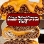 This Grilled Cheese Burrito combines the smoky flavors of seasoned ground beef with creamy cheese and spicy chipotle sauce, all wrapped in a warm flour tortilla and grilled to crispy perfection. It’s a delightful fusion of a classic burrito and a grilled cheese sandwich, perfect for a comforting and indulgent meal.