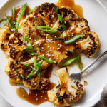 - Serve: Arrange grilled cauliflower steaks on a platter. Generously slather with the thickened teriyaki sauce. Garnish with thinly sliced scallions and toasted sesame seeds. Serve immediately.