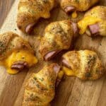 Ham and cheese crescent rolls are a delicious and easy snack or appetizer perfect for any occasion. Filled with savory ham and melty cheddar cheese, these golden rolls come together quickly using store-bought crescent dough.