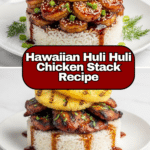 This Hawaiian Huli Huli Chicken Stack is a vibrant, flavorful dish featuring tender grilled chicken marinated in a sweet and savory teriyaki-pineapple sauce, layered over fluffy white rice and topped with caramelized pineapple rings. Finished with a glossy glaze and garnished with green onions and sesame seeds, this recipe brings a taste of the islands to your plate with simple ingredients and straightforward grilling techniques.