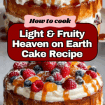 Heaven on Earth Cake is a light and delightful layered dessert featuring airy angel food cake cubes, mixed berries, creamy vanilla pudding, and whipped topping, all drizzled with luscious caramel or berry sauce. Perfect for gatherings, this no-bake treat blends fresh fruit and creamy textures into a stunning trifle.