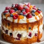 Heaven on Earth Cake is a light and delightful layered dessert featuring airy angel food cake cubes, mixed berries, creamy vanilla pudding, and whipped topping, all drizzled with luscious caramel or berry sauce. Perfect for gatherings, this no-bake treat blends fresh fruit and creamy textures into a stunning trifle.