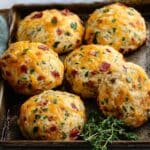 - Add Topping: Sprinkle the reserved ½ cup cheddar cheese evenly over the tops of the biscuits to add an extra cheesy crust as they bake.